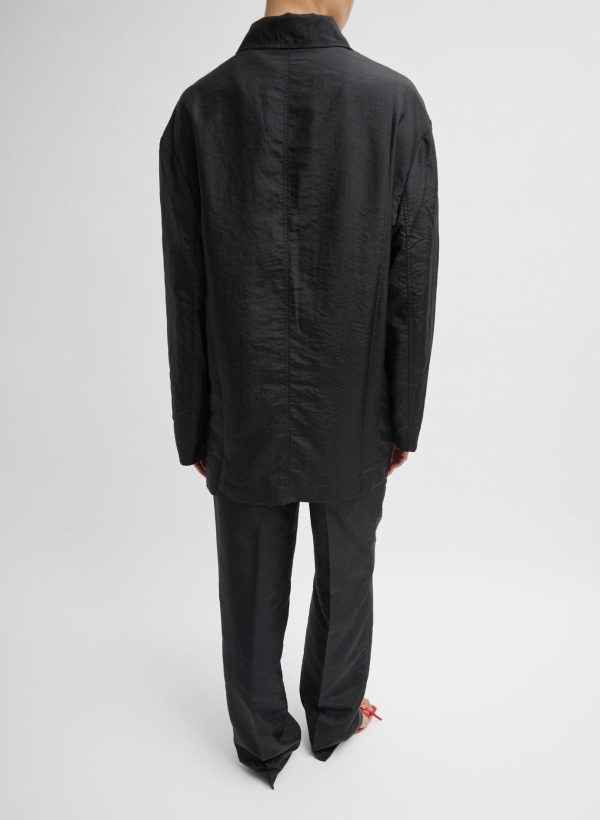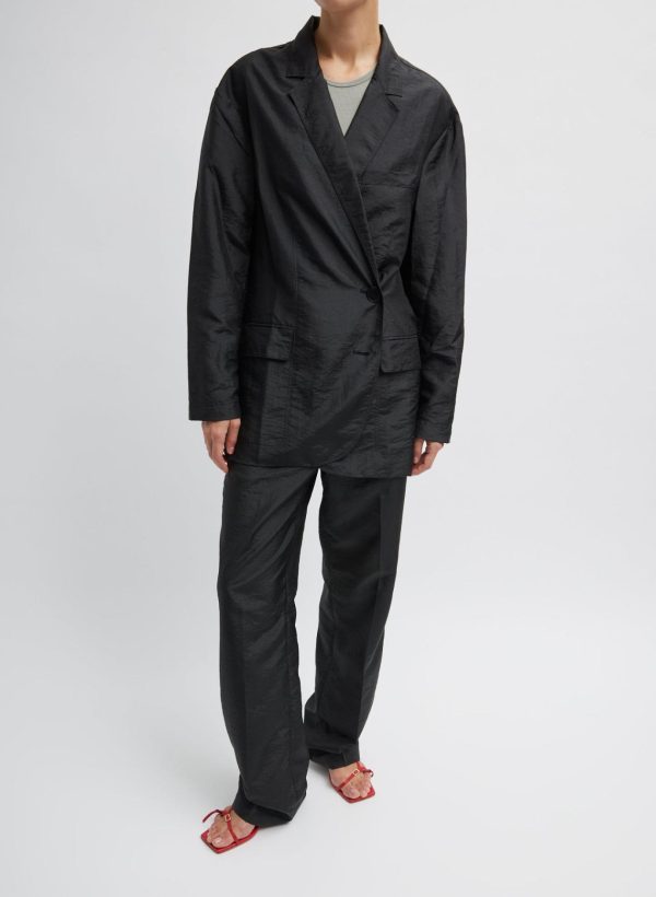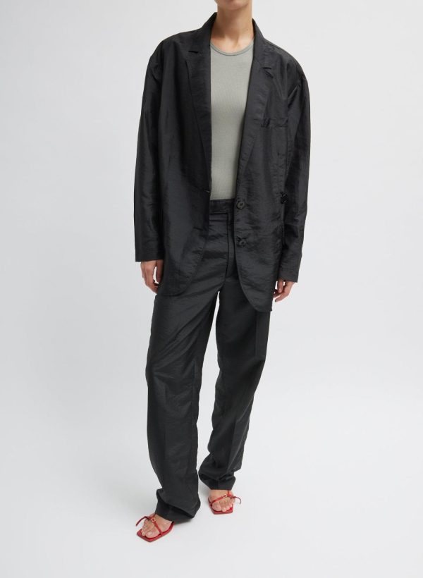 This assortment serves as your WOFs (Without Fails) and are designed to create space in your wardrobe for creativity and experimentation. No matter how extreme your closet may become, these pieces serve as the grounding element that ties everything together. Crafted from an Italian luxury Crispy nylon fabrication he Crispy Nylon Liam Blazer is reimagined for Spring 2025, bringing more depth to an already fundamental silhouette. Grounded in utility, this lightweight yet durable style is water-resistant, designed to withstand unpredictable trend cycles and inclement weather patterns. Style it with the matching Rodney Trouser or over casual separates for an effortlessly modern touch.