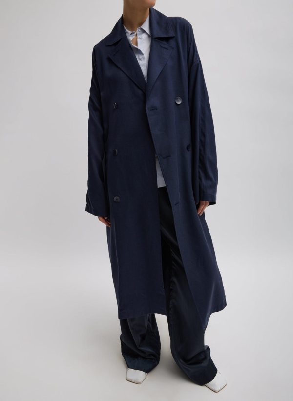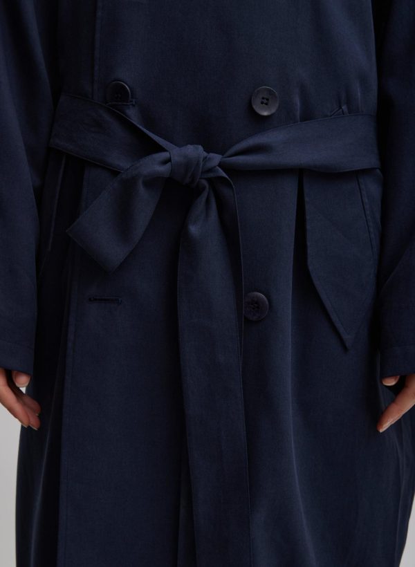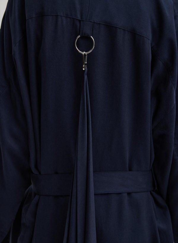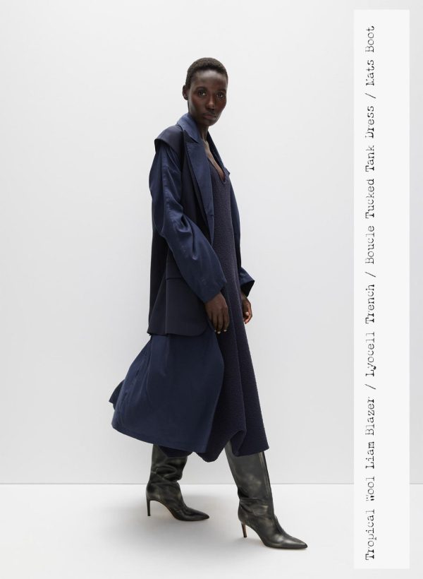 Crafted from a sustainable tencel and nylon blend, the Lancaster Lyocell Trench is the perfect lightweight jacket for this season. Available in two colorways—Stone and Navy—this trench will be your go-to time and time again. Features a detachable bandana that can flow as is or can be utilized for all your nuanced styling hacks. Along with a detachable belt for a multitude of styling permutations. Pair back to the Compact Stretch Cashmere Sweater T-Shirt Dress and Borg Sock Boots for the ultimate CMC look this season.