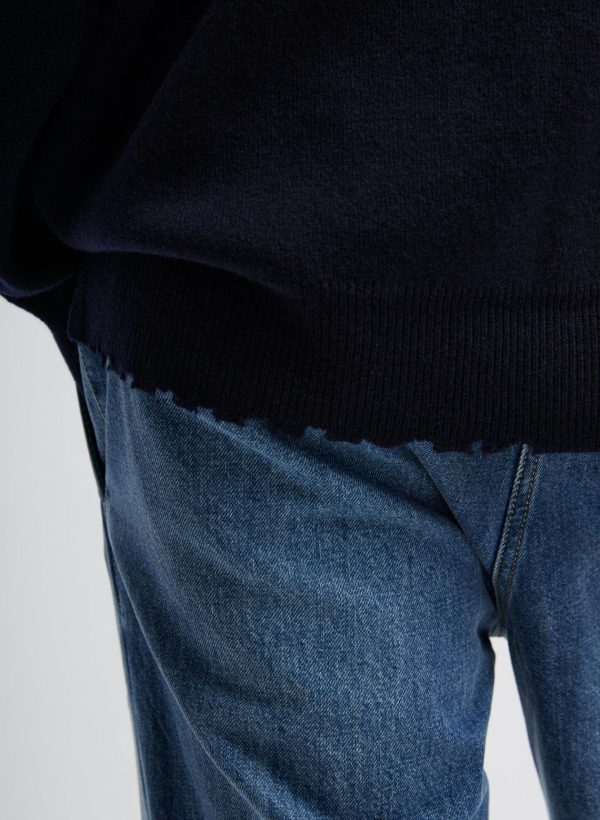 The Anna Merino Wool Hole-At-Back Pullover presents a refreshed take on classic knitwear. Sustainably crafted from a recycled wool blend, it features an asymmetrical chewed hem and an open-back detail, embracing our belief that clothing is meant to be lived in. This piece transcends seasons and trends, destined for a permanent spot in your rotation. In Navy and Heather Grey, this pullover pairs effortlessly with Barry Denim or our Eco Nylon Circle Skirt, ready for endless layered looks through fall and winter.
