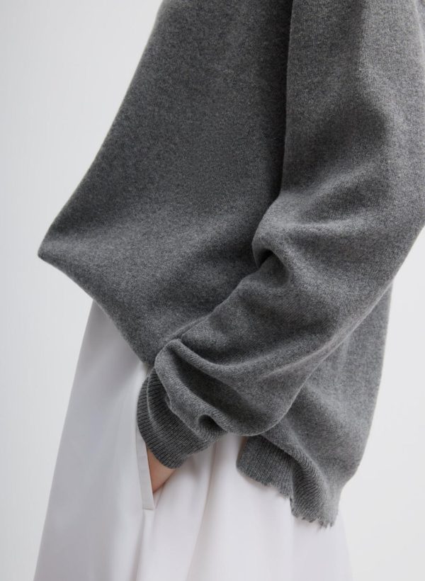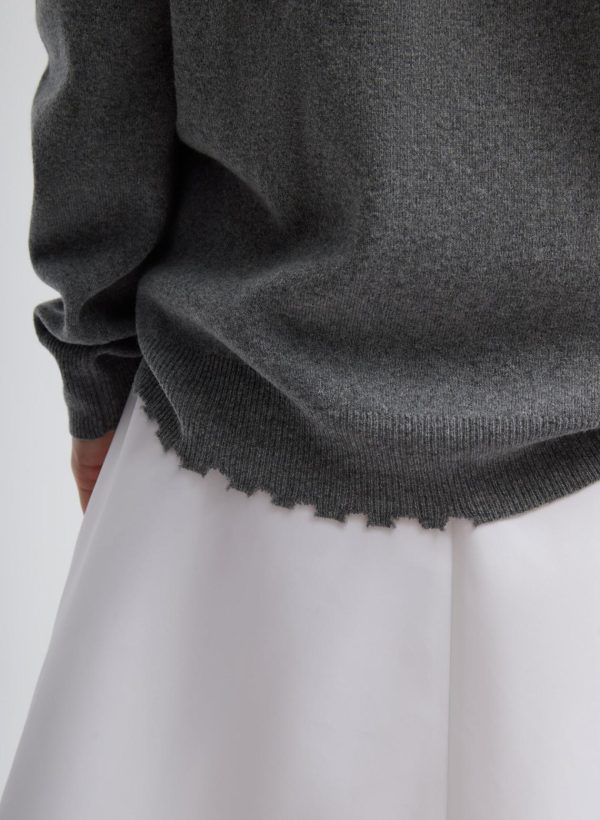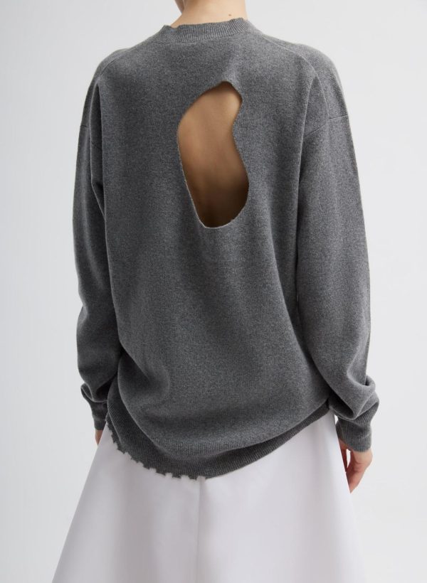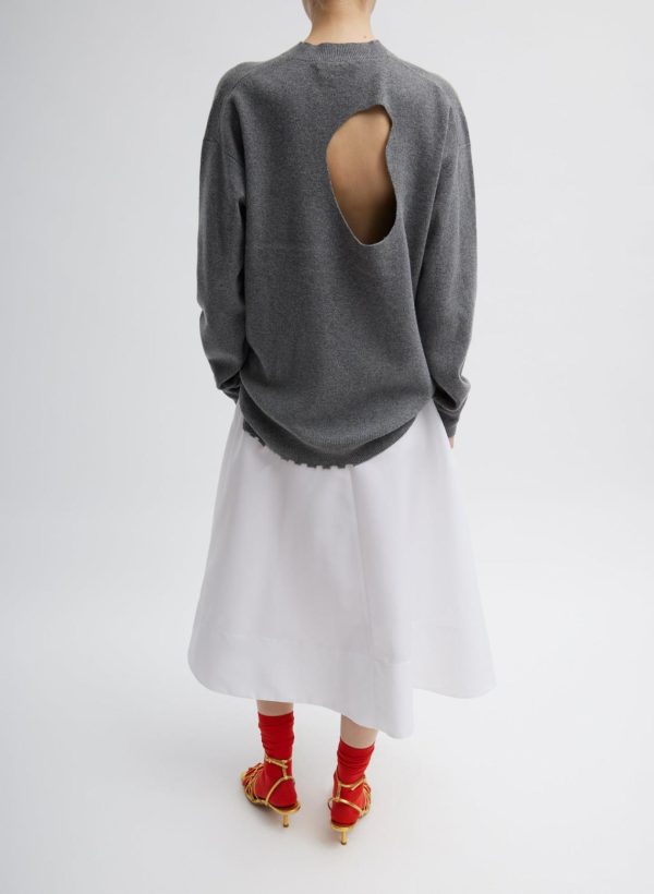 The Anna Merino Wool Hole-At-Back Pullover presents a refreshed take on classic knitwear. Sustainably crafted from a recycled wool blend, it features an asymmetrical chewed hem and an open-back detail, embracing our belief that clothing is meant to be lived in. This piece transcends seasons and trends, destined for a permanent spot in your rotation. In Navy and Heather Grey, this pullover pairs effortlessly with Barry Denim or our Eco Nylon Circle Skirt, ready for endless layered looks through fall and winter.