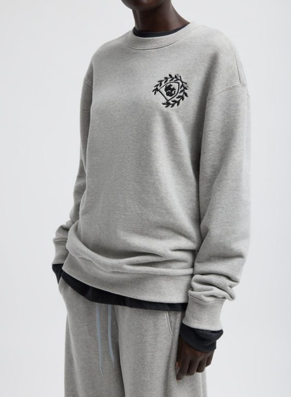 The Embroidered Patch Sweatshirt reinvents a classic silhouette with a flipped elephant-crest emblem, a nod to Tibi’s heritage with an ironic twist. Pair with the Winslow Pant for an effortlessly cohesive look or with denim and jeweled shoes for a unique evening spin.