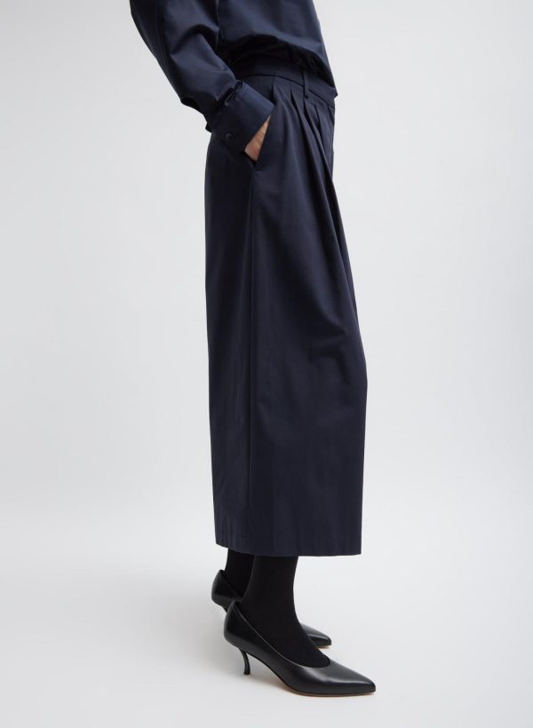 The Bio Twill Triple Pleat Cropped Pant in Italian gabardine-inspired bio twill brings both luxury and durability. This cropped silhouette invites playful layering with hosiery and footwear combinations, whether paired with sleek pumps or tall boots. An ideal companion for the chill-to-classic wardrobe.