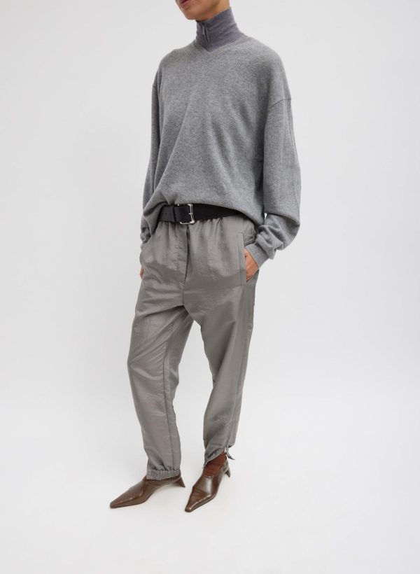 This assortment serves as your WOFs (Without Fails) and are designed to create space in your wardrobe for creativity and experimentation. No matter how extreme your closet may become, these pieces serve as the grounding element that ties everything together. The crispy nylon family has quickly became a fan favorite for the creative pragmatist. The washable, packable, wrinkle resistant material lends itself to not only limitless packing options, but sartorial ones as well. Introducing the newest member of the Crispy Nylon family, the Kat Jogger, a cousin to the fan favorite Felix Paperbag Jogger, without the paperbag effect, offering a tailored leg, a pull-on elasticized waist, and side zippers, really does it all. Made in a nylon blend, these pants possess the relaxed elegance needed to transition from the grocery store to the office, to evening with the right shoes. This is the ultimate PDW for customers who are continuing to build out their ideal wardrobe.