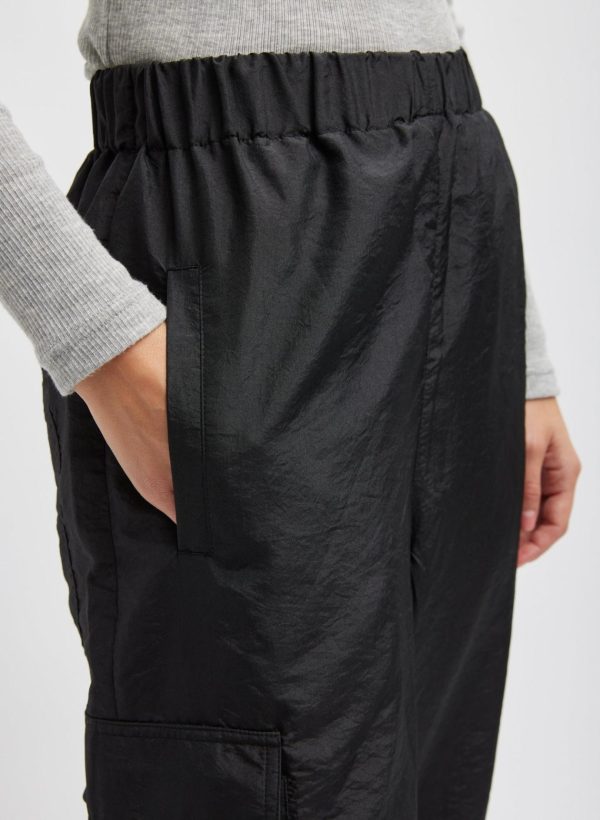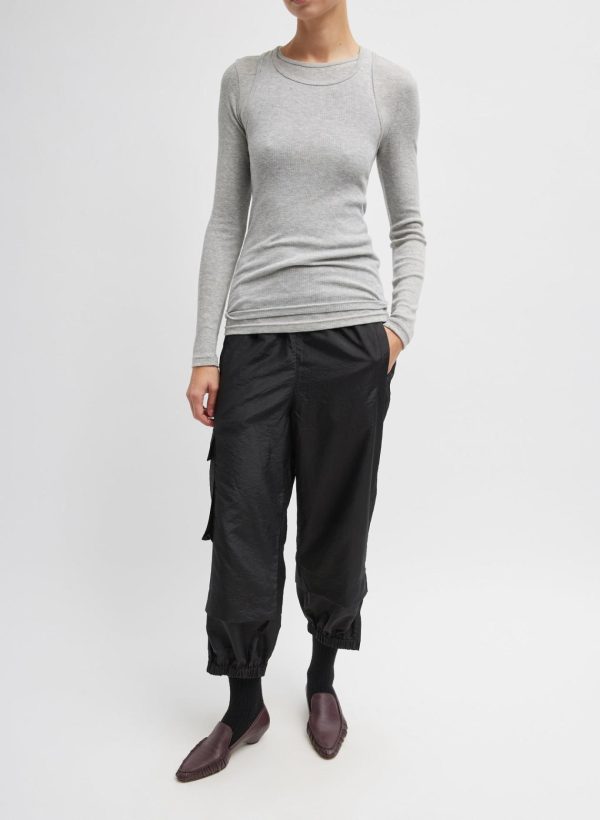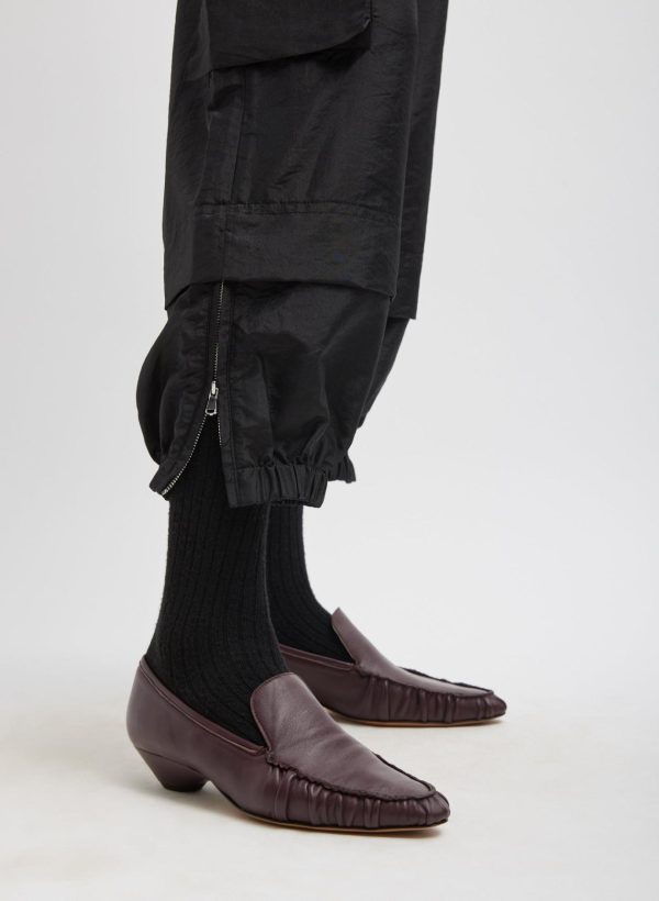 This assortment serves as your WOFs (Without Fails) and are designed to create space in your wardrobe for creativity and experimentation. No matter how extreme your closet may become, these pieces serve as the grounding element that ties everything together. The crispy nylon pull on Wilt jogger quickly became a fan favorite for the creative pragmatist. The pull-on elasticized waist, functional side cargo pockets, side zippers, and the chic flap detail on the shin. Made in a nylon blend, these pants possess the relaxed elegance needed to transition from the grocery store to the office, to evening with the right shoes. This is the ultimate PDW for customers who are continuing to build out their ideal wardrobe. For a chic seasonal transition look, tuck your pants into a shaft boot and pair with a cashmere sweater.