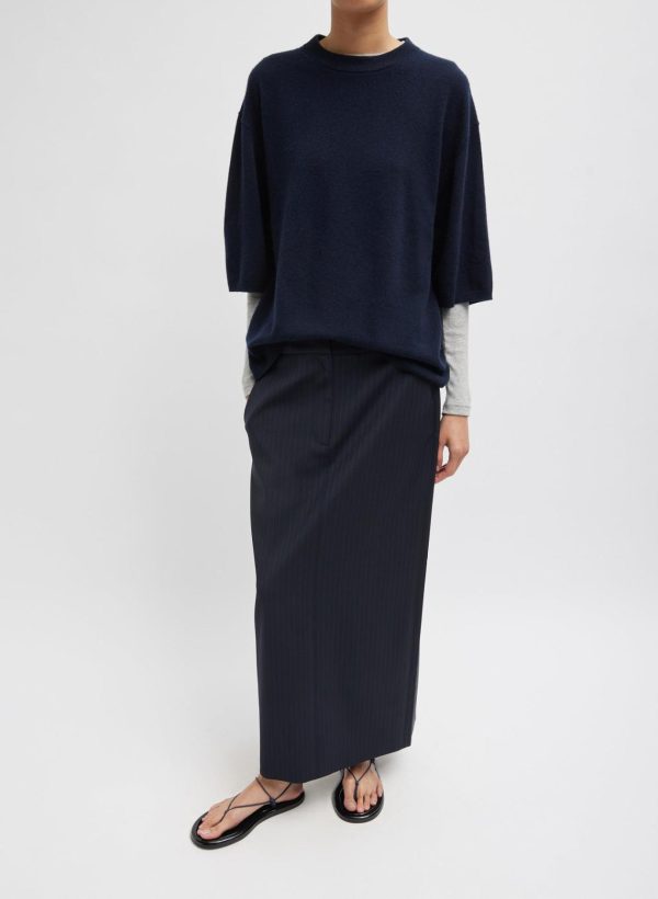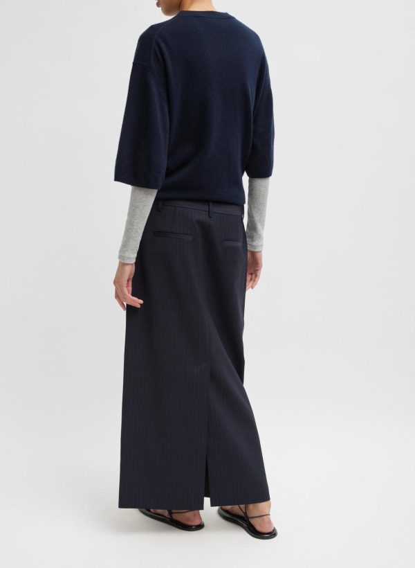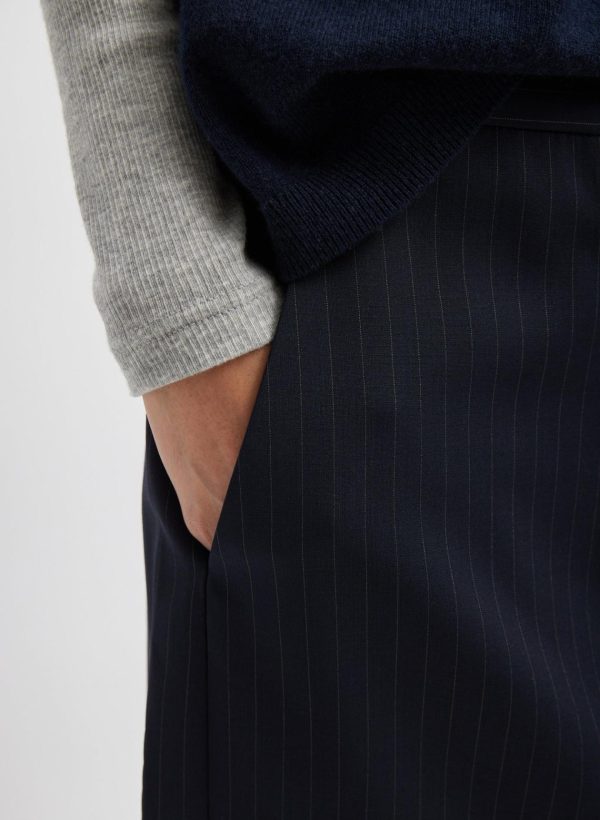 A creative take on pragmatic suiting, the Dominic Pinstripe Long Trouser Skirt offers year-round wearability. This maxi skirt combines timeless tailoring with modern ease to effortlessly adapt to your individual style ethos. Pair back to WOF pieces like the Charlie Shirting and Liam Blazer, or layer in novelty items for a uniquely personalized look with added interest.