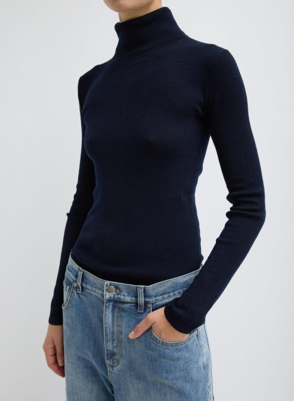 Tops | Women Tibi Featherweight Ribbed Sweater Turtleneck Pullover