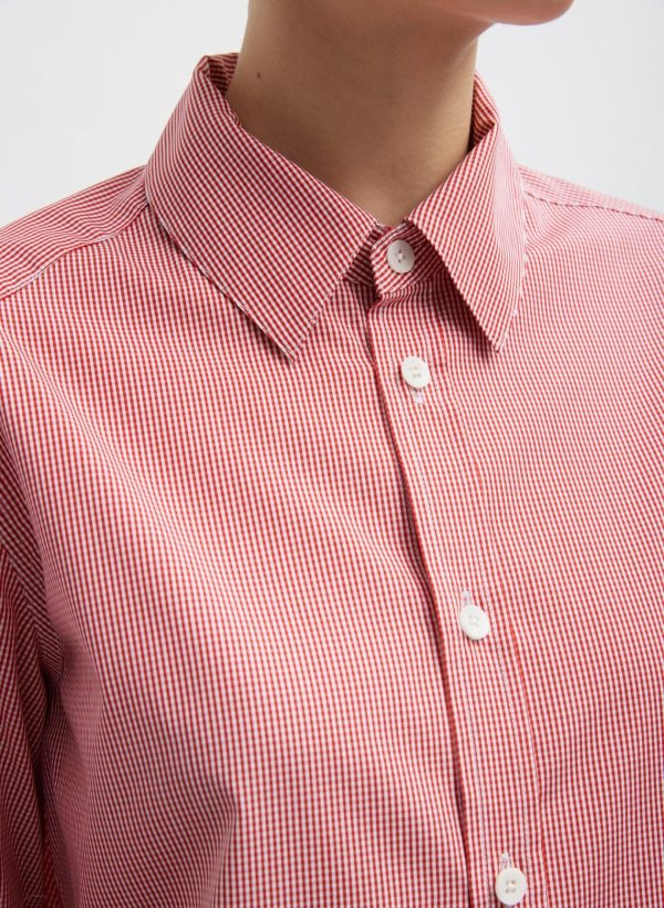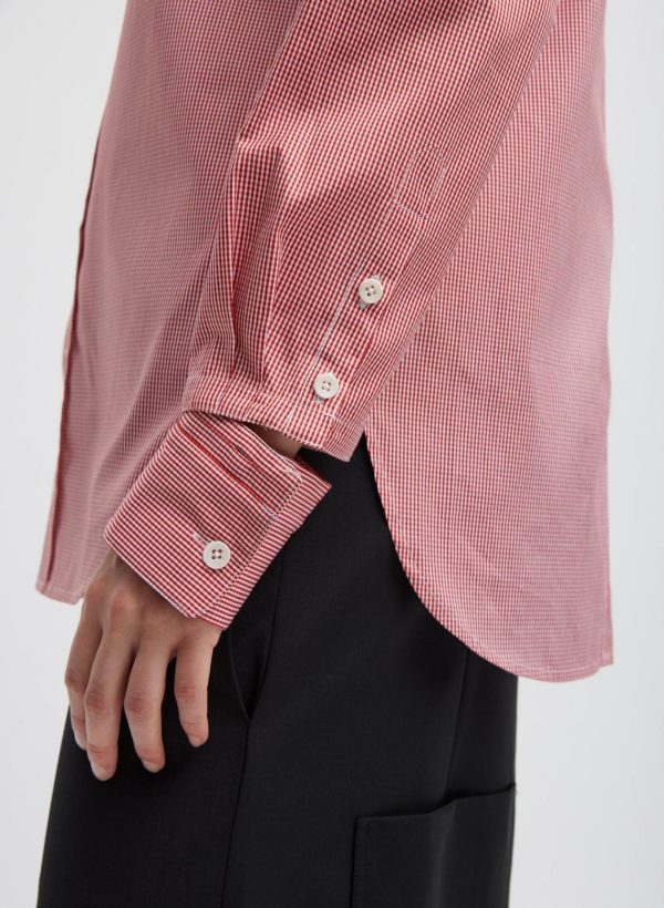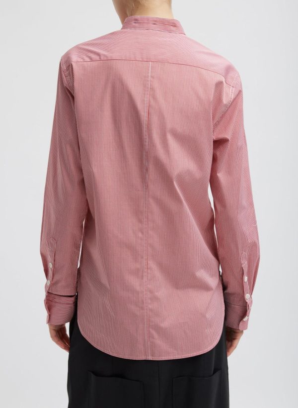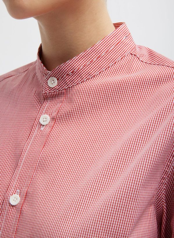 Our Mini Check Detached Slim Shirt, crafted in 100% Italian cotton, features a classic check pattern with a detachable collar, offering versatility for both casual and polished settings. Pair it with the Active Knit Winslow Pant and White Matt heels for an iconic Chill, Modern, and Classic look.
